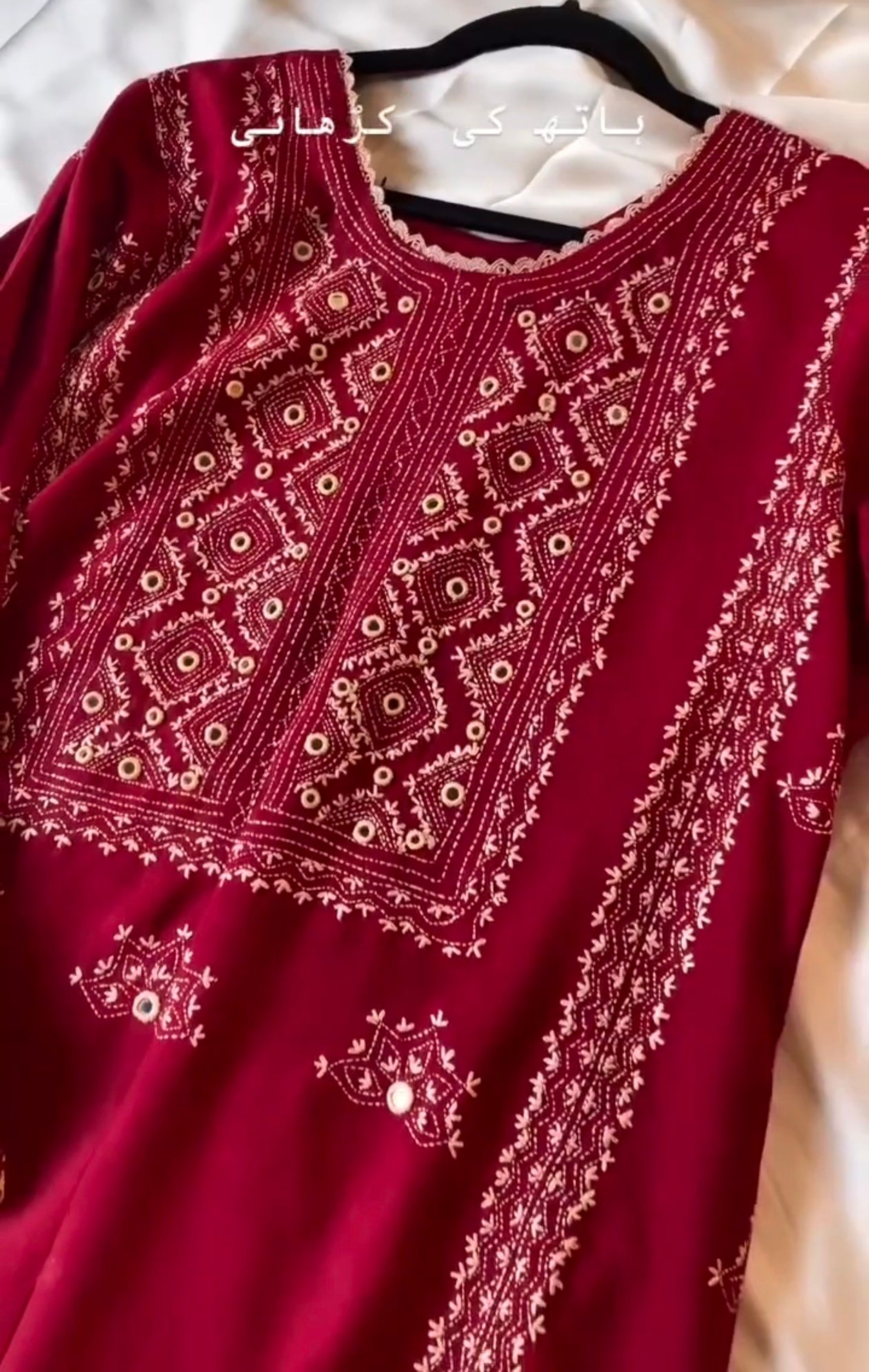 Features intricate aari embroidery on the shirt and sleeves
