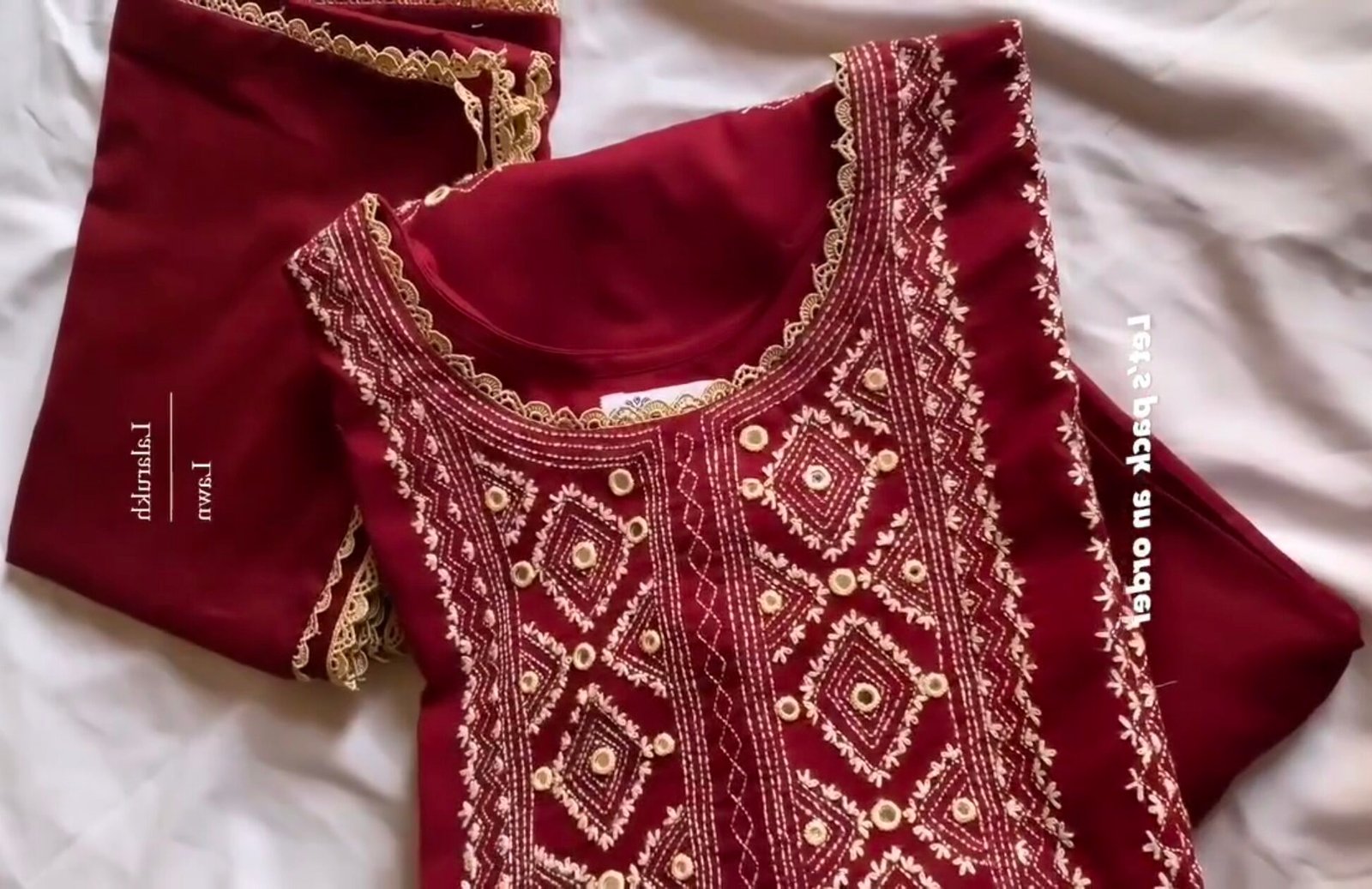 Deep Maroon with Golden Embroidery